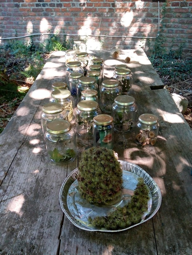 De werken van de Nederlandse kunstenaar Johan Geerligs in het museum van zorgvuldig verzamelde, geperste en aan de wand tentoongestelde bloemknppen, bladeren en kruiden kan het best bekeken worden samen met een wandeling naar zijn betoverende buiteninstallatie, die zich bevindt tegenover de 'Gemeinschaftsgarten', in 2016 opgericht en aangelegd door Geerligs samen met anderen aan de Rutterswal. Zijn werk is daar verborgen achter een oude tuindeur. Als je afdaalt in de wal dan kom je binnen in de macrocosmos van de microcosmos waarin Geerligs de bezoekers uitnodigt. Achter een haag onder de bomen vindt u een mysterieuze tuin, die doet denken aan de woonplaats van een druide of een sjamaan. Er is een soort van klein tuinhuisje met tafels, foto's en tal van andere gebruiksvoorwerpen, waarmee Geerligs zijn verzameling knoppen, zaden, bloemen, bosvruchten en meer presenteert. Allemaal elementen die natuurlijk zijn en die pas gaan groeien, zich ontvouwen en nieuw leven creeeren als je ze zou gebruiken en planten.