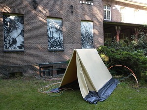 2021Het ziet er uit of het gaat om de aanleg van glasvezelkabels. In werkelijkheid worden er tunnels gegraven. Tunnels zoals onder de toenmalige Berlijnse muur, tunnels onder de grens tussen Egypte en Gaza, tunnels om te ontsnappen of om mee te gaan in het konijnenhol uit Alice in Wonderland. Tunnels van verbinding en verbeeldingskracht.